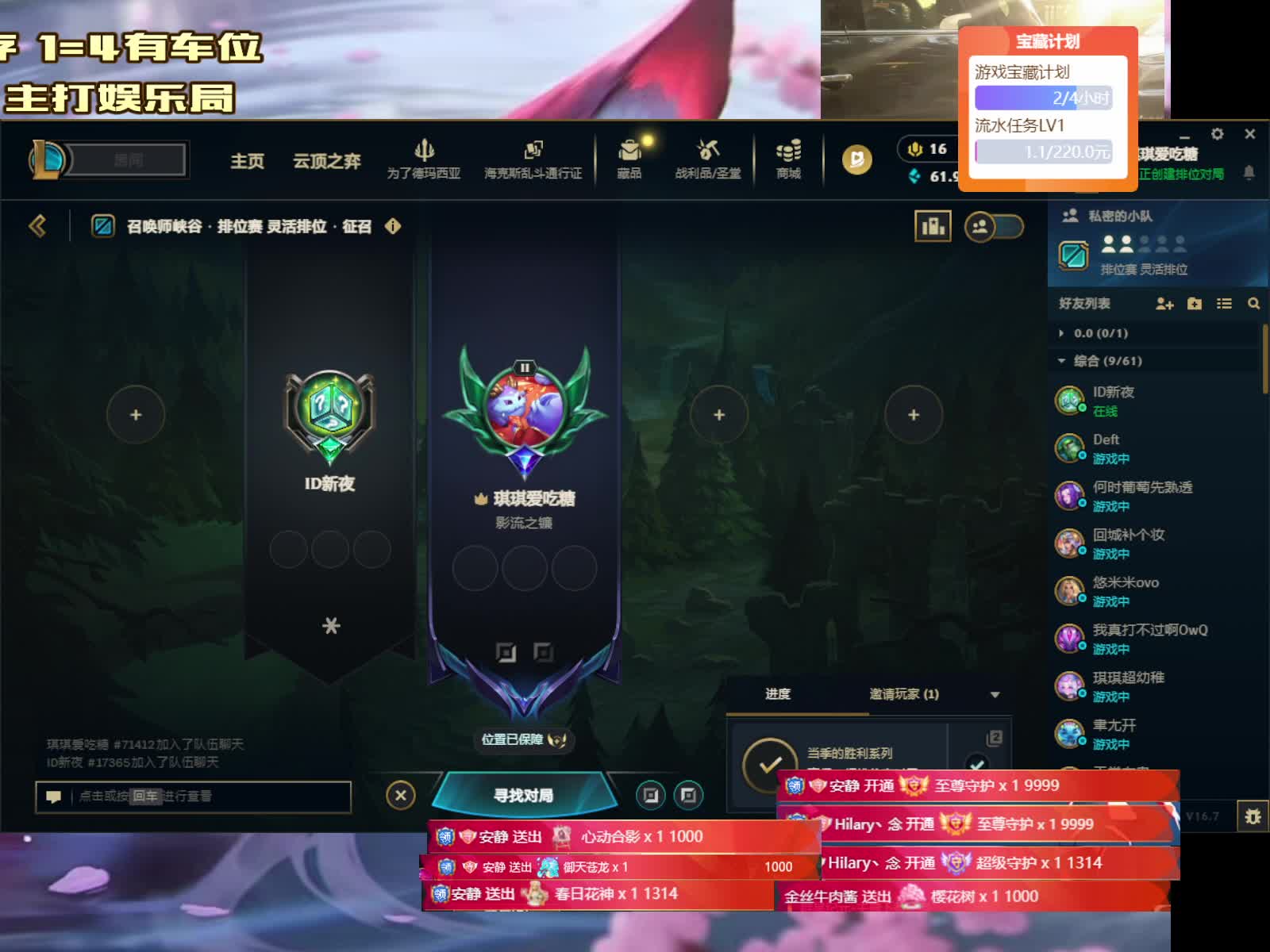 好久没直播了。回归峡谷
