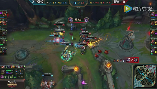 本场大嘴的表现非常强势,在短暂的换线期后甚至在补刀上都对卢锡安造成了压制,虽然OMG的上路在前期被针对导致发育有些惨淡,队伍经济也存在劣势,但大嘴的恐怖发育在第一次抱团对战时便完全显现出来,EPA对大嘴无法造成有效威胁,只有节节败退。28分钟,EPA上路高地处大嘴在队友的保护下疯狂输出,拿下五杀结束了比赛。(LPL升降级赛:OMG vs EPA)