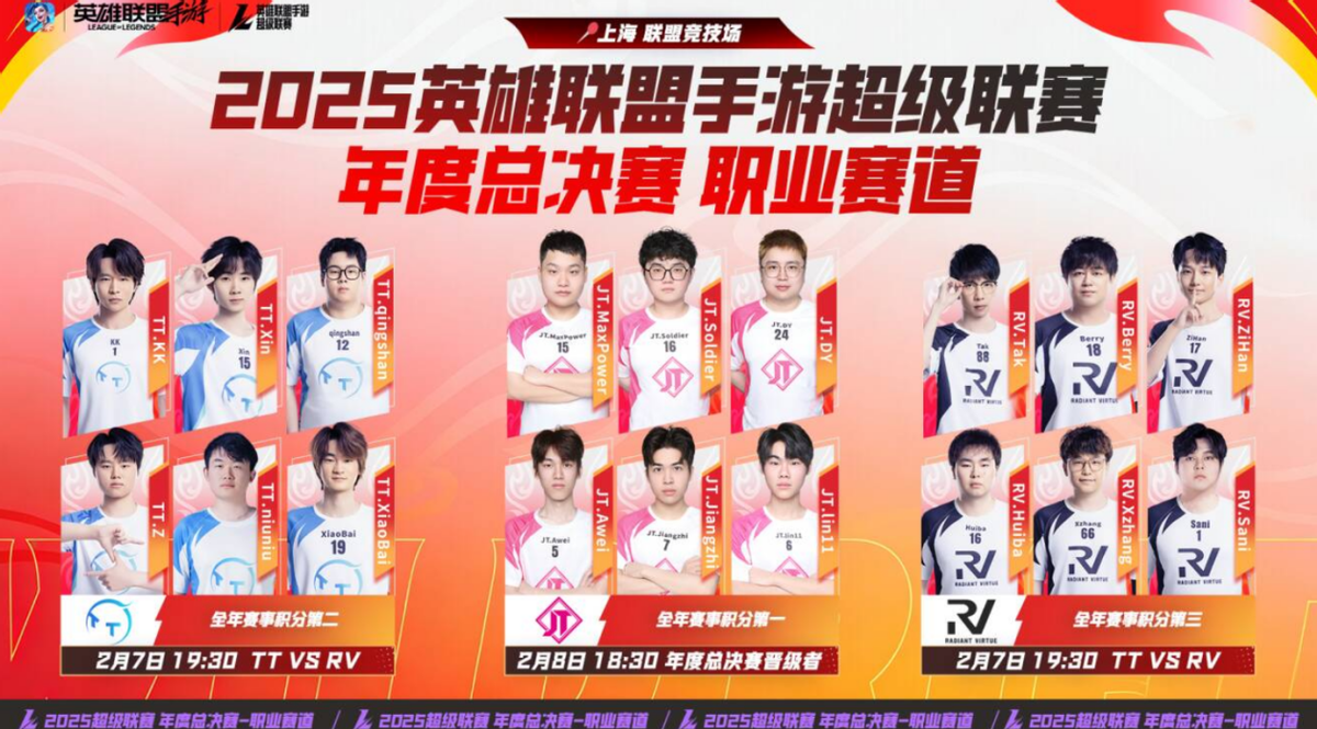 2月7日: 17:00-19:30 SOLO赛总决赛;19:30-22:00 职业半决赛(RV vs TT)