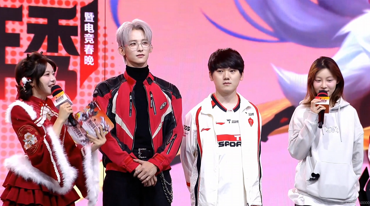 在满场期待中,主持人骆歆闪亮登场,将现场气氛推向第一个小高潮。在她的介绍下,两位重量级嘉宾步入舞台中央,英雄联盟国风代言人罗云熙与英雄联盟手游明星召唤师常华森。