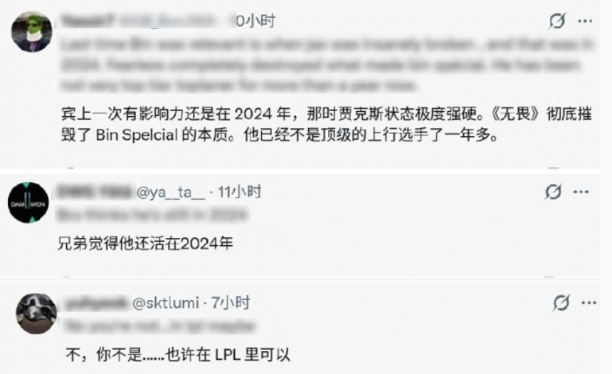 甚至Bin的这条微博很快还被搬运到海外LOL社区,引发了不少国外英雄联盟玩家的热议。有国外的网友忍不住嘲讽道:“Bin觉得他还活在2024年。”不过Bin曾经说过,自己很多采访中很多看起来离谱的言论其实是为了给队友吸引火力,把舆论都往自己身上揽可以让队友压力变小。
