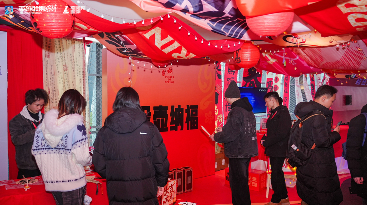 新春试炼·擂台体验站采用经典守擂赛制,即来即打,守擂成功者更可赢取红魔10air手机等硬核福利。蕊雪梅苑·祈愿打卡区完美还原手游峡谷庭院场景,召唤师们在此拍照打卡、领取定制春联、在祈愿梅树上系下新年Flag。新春纳福区设置投壶挑战、DIY团扇、心愿墙三重互动,完成挑战即可抽取LOL冠军纳什男爵手办、魄罗拍拍灯等丰厚周边。