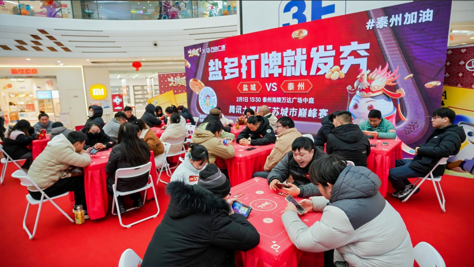 2026年,腾讯大掼蛋迎来上线一周年,品牌借势江苏浓厚的掼蛋氛围,在全省13城万达商圈倾力打造“江苏城市巅峰赛”。赛事汇聚208支战队、400余名选手同台竞技,最终盐城战队突出重围,摘得“江苏掼军”桂冠。这场全民狂欢不仅是品牌一周年的重磅献礼,更以数字技术赋能传统掼蛋,让“为城而战”的热血燃遍十三太保,成为连接群众的文化纽带。