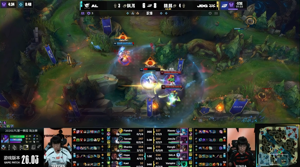 在经历了春节的短暂休赛期后,2026 LPL第一赛段的比拼也是正式进入了淘汰赛阶段。随着淘汰赛首轮的四场比赛打完,LPL在今天也是迎来了淘汰赛胜者组JDG与AL的强强对决。由于如今JDG的教练是去年身处AL的Tabe,场外的恩怨情仇也让这场比赛增添了不少看点,双方的较量似乎也关乎着Tabe离开AL是对是错。