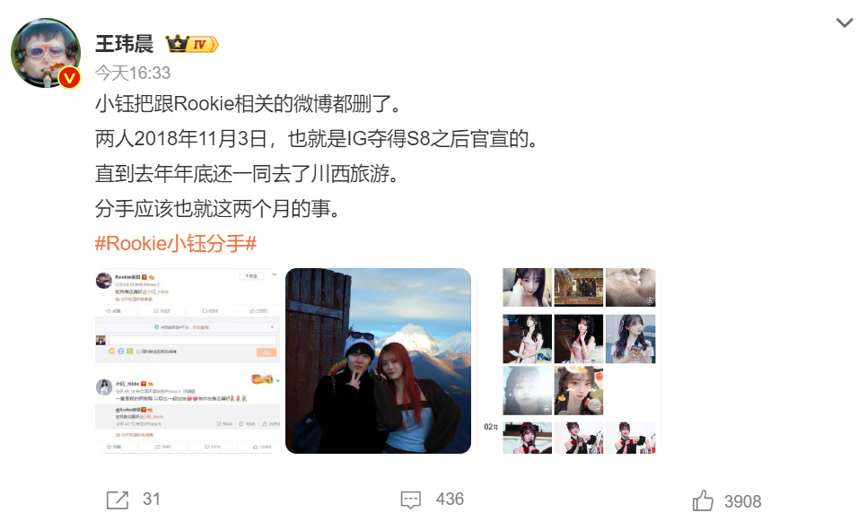 在这条微博中,Rookie表示他和小钰分手已经有一段时间,并且分手是他自己主动提出的,而原因不是某个人做错了什么,而是两人在认真聊过后发现对未来的人生规划方向有所不同。而小钰随后也发博表示:“前路自有光,过往皆序章。”通过这段话证明两人的恋情确实已经是过去式。
